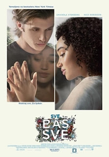 Na temelju najprodavanijih romana Nicole Yoon, Everything, Everything je najnovija knjiga za filmsku prilagodbu koja će doći do velikih ekrana. Amandla Stenber igra Maddy Whittier, 17-godišnjakinja koja nikada nije izašla nogom izvan svoje kuće zbog rijetke bolesti imunodeficijencije. Maddy provodi svoje dana pokušavajući živjeti svoj život najbolje što može. Ona polaže nastavu na internetu, gleda filmove, čita knjige, surfa internetom i čak je i dio on-line grupe za podršku gdje može komunicirati s drugim tinejdžerima koji imaju slične bolesti. Međutim, sve se mijenja kad se Olly (Nick Robinson) dolazi u susjedstvo. Ako vam ovaj priča zvuci poznato, ne čudimo se. Velika većina ove price je kopija časopisa “The Boy in the Plastic Bubble”. Jedina velika promjena u svemu je promjena spola glavnog lika i korištenje tehnologije. Upravo ove izmjene u filmu su dovele više to neke uvrnute bajke, a ne do dramatične tinejdžerske ljubavne priče. Unatoč osjećaju da je film čista kopija gore navedenog filma, moj glavni problem s Everything, Everything je činjenica da se gledaoci neće moći povezati s Maddyjem kao osobom. Jednostavno se očekuje da se brinemo za nju samo zato što je ona glavni lik s bolešću. Film ne prikazuje Maddyino odrastanje ni u montaži. Umjesto toga, priča jednostavno skače u njezin život kao 17-godišnjakinja. Maddyjeva majka i Clara su samo polu važni sekundarni likovi filma i ne saznajemo ništa o njima. Saznajemo samo da je Maddyjeva mama liječnica i da je njezin suprug i sin preminuli kad je Maddy bila beba. To je sve što imamo. Carla, medicinska sestra, dobiva apsolutno nula karakter i jednostavno se koristi kao uređaj za pronalaženje prelaženja priče. Maddyev ljubavni interes prema Olly koji ima velikih obiteljskih problema, ali osim nekoliko kratkih scena koje se bave njegovim zlostavljanjem od strane oca, ne dobivamo apsolutno ništa drugo. Nepotrebno je reći da nema puno za gledaoce da se približe priči između “Olly i Maddy” ljubavi na prvi pogled. Film dosljedno nagovještava da će se nešto dogoditi s Maddyjevim poremećajem, ali to zapravo ne dovodi do nečeg bitnog. Ljubavna priča u konačnici postaje glavni fokus filma i dok želim da ljubavna priča radi, ona je također vrlo blaga i predvidljiva. Nadao sam se da će, kako je film odmicao, da će se njihova ljubavna veza povezati sa mnom, ali to se nije dogodilo. Ako pak pokušamo ovaj film nahvaliti zbog njegovog umjetničkog izražaja i direkcije, niti tu nećemo naći ništa posebnoga. Gledajući film, nećete se moći oteti dojmu da je produkcija na razini nekog običnog TV filma, kakvog biste mogli pogledati na Hallmarku. Redateljica Stella Meghie prije ovog filma režirala je samo jedan dugometražni film, a to je nažalost veoma očito. Gotovo svaka scena snimana je iznimno dosadno, te ne možemo istaknuti niti jednu koja je uistinu lijepo odrađena. Iako je imala priliku pokazati sav sjaj Havaja na kojima je film sniman, ona niti malo nije uspjela to iskoristiti. Na kraju “Everything, Everything” je prilično isprana verzija “Boy in the Plastic Bubble”. Film pokušava biti smiješan i dramatičan, ali ipak ne uspijeva. J.Mills Goodloe je skripta predvidljiva i nezanimljiva dok je Meghiejev smjer jednako osnovan. Ovo je samo još jedan roman za mlade ljude koji nikad nije trebao biti izveden na ekranu, no ako imate veliku ljubav prema ovakvim vrstama filmova, ne vidimo ništa loše u tome da ga pokušate zavoljeti. OCjena: 6.5/10 Titlovan Trailer: